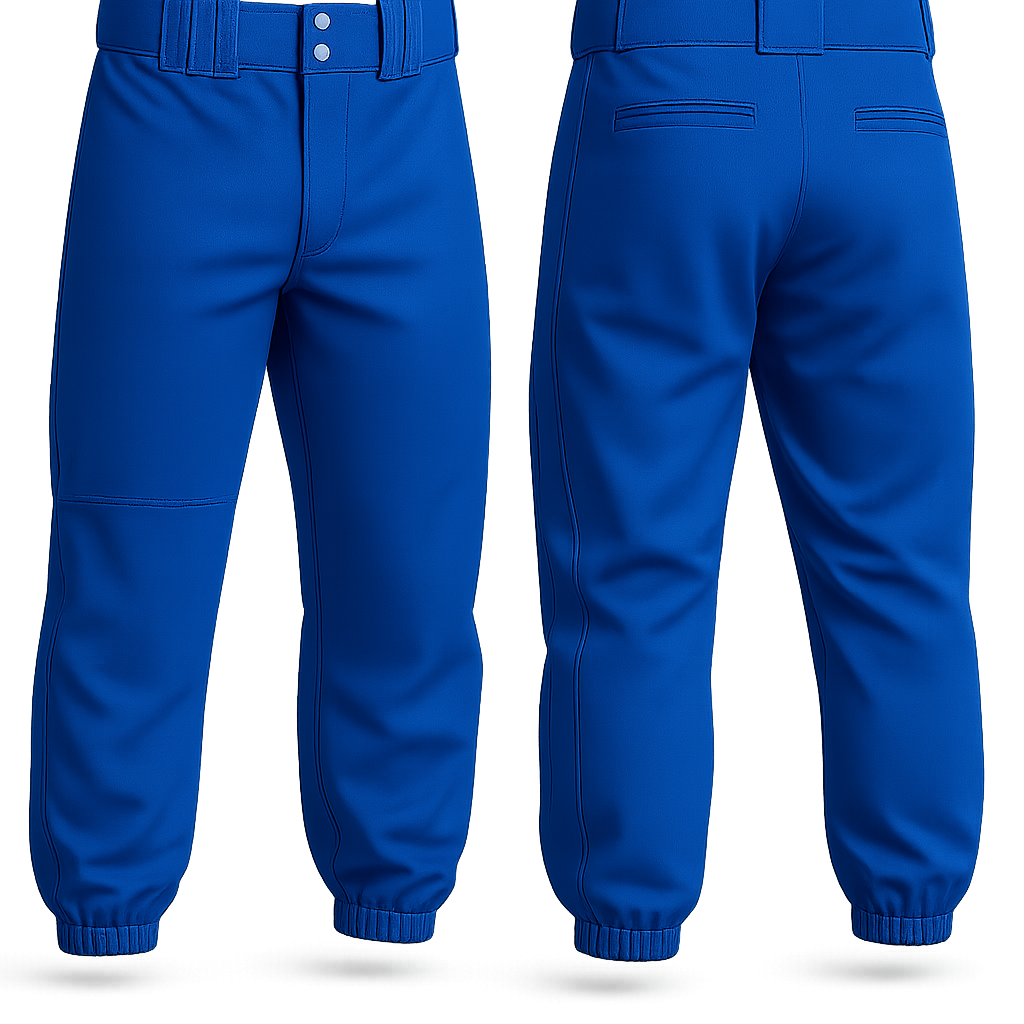 Our custom baseball knickers are made from durable, high-quality dyed polyester fabric, designed for comfort, flexibility, and long-lasting wear on the field. With no sublimation printing, these knickers feature classic solid colors — Royal Blue, Red, Black, White, Maroon, and Gray — perfect for a clean, professional team look.